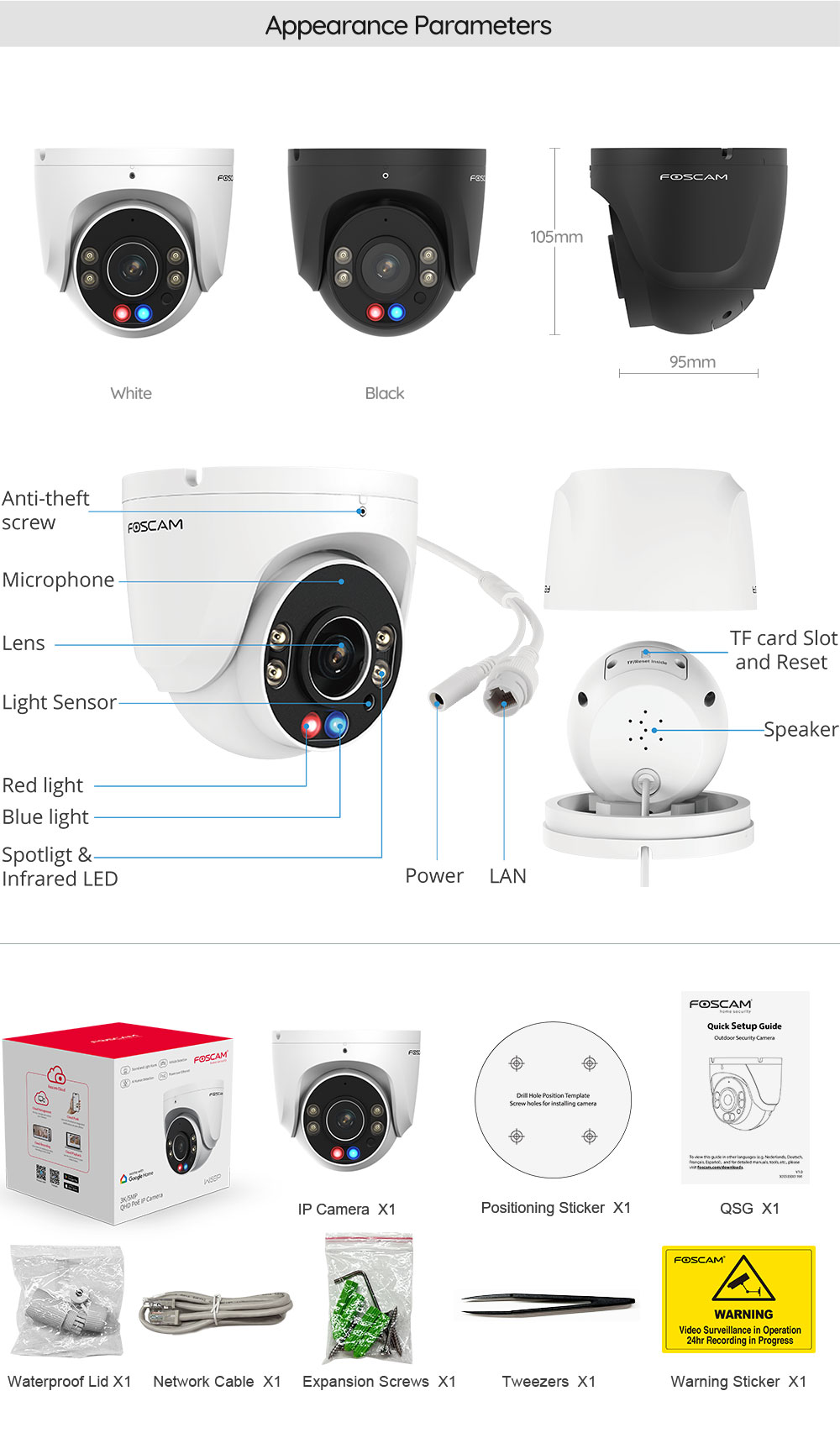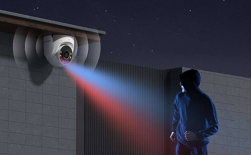 Once an intruder is detected, the camera instantly activates its red and blue flashing lights,spotlight, and loud siren to ward off intruders in real time. This powerful combination provides immediate on-site deterrence and draws attention to potential threats.
