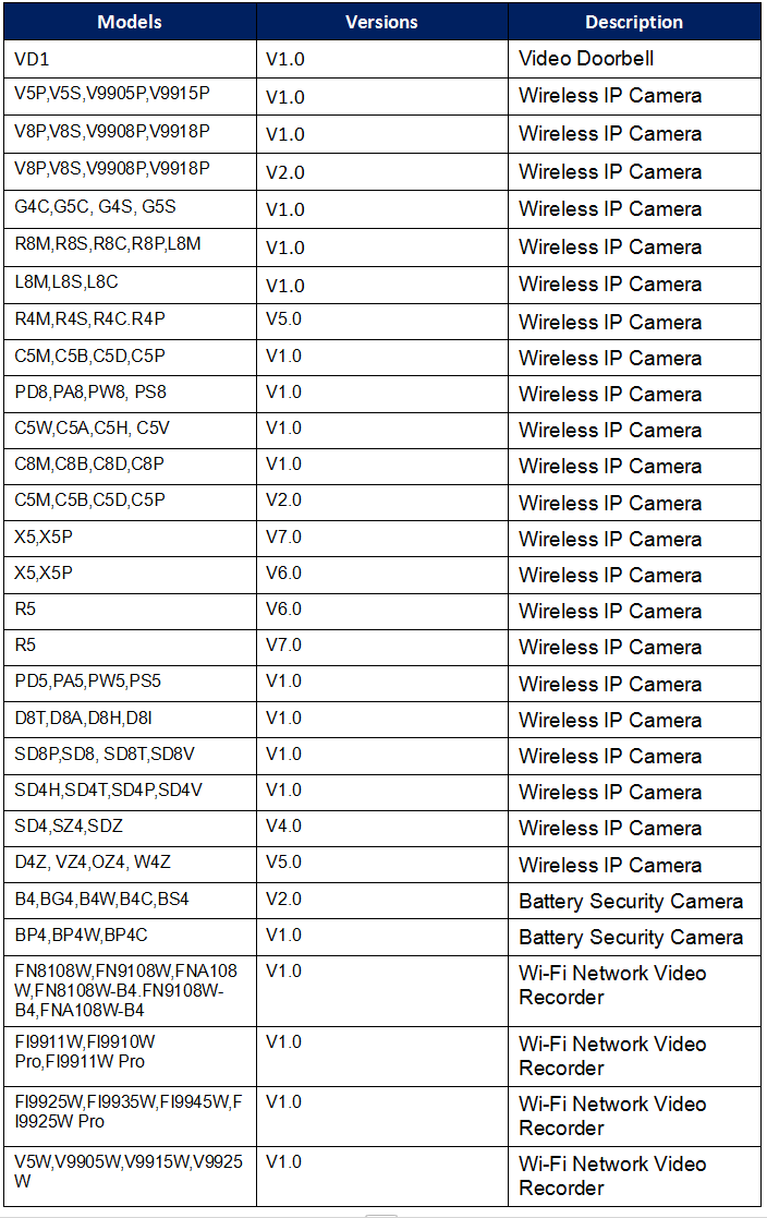 We strongly encourage organizations and individuals to contact FOSCAM’s security team to report any potential security issue.